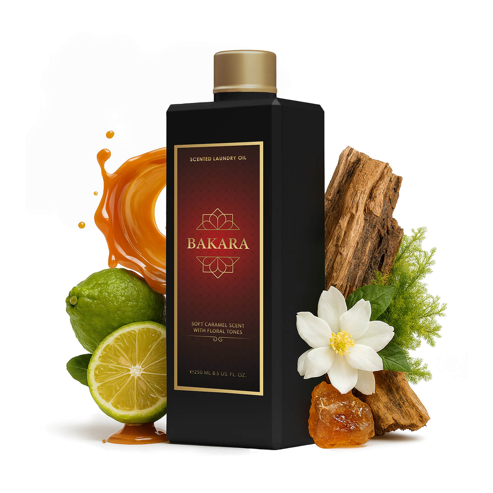 Mit dem Wäscheparfum BAKARA duftet Ihre Wäsche ambraartig und elegant. In der Duftkomposition dieses Wäscheöls verschmelzen spritzige Zitrusnoten, süßes Karamell und verführerische Ambra. Kleidung und Bettwäsche bleiben nach dem Waschen frisch – mit einem Hauch von Luxus und Sinnlichkeit. BAKARA verwandelt jedes Kleidungsstück in ein Einzelstück.