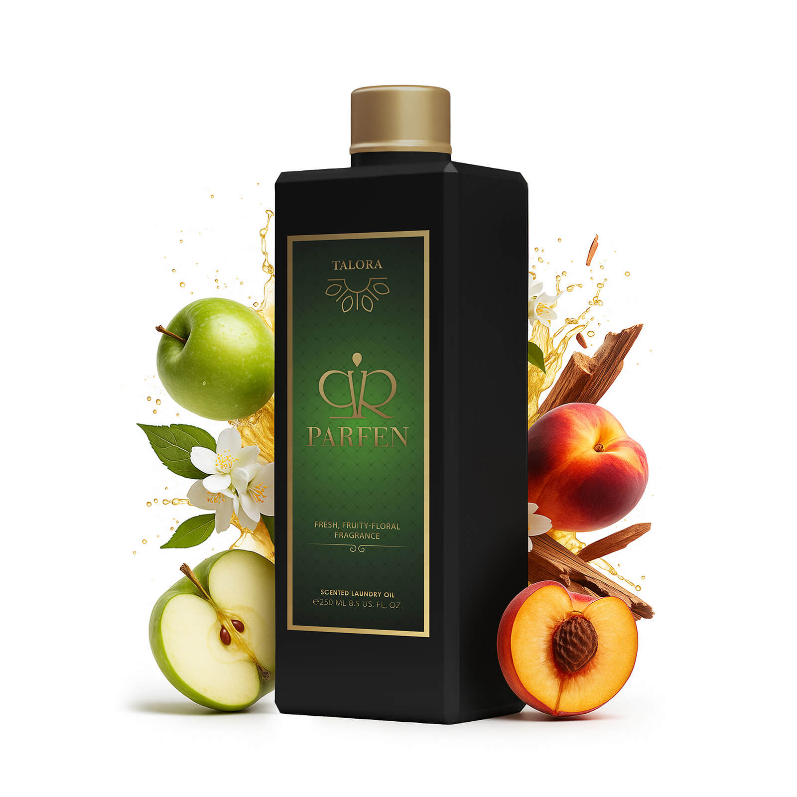 Suchen Sie nach einer Alternative zum klassischen Weichspüler? Wenn Sie sich nach frischer Wäsche mit Hauch saftiger Früchte sehnen, ist das Wäscheparfüm TALORA genau das Richtige für Sie. Es enthält saftige Noten von Pfirsich und Apfel, die in Kombination mit anderen Duftnoten den Eindruck eines Spaziergangs durch einen blühenden Obstgarten voller positiver Energie erwecken.